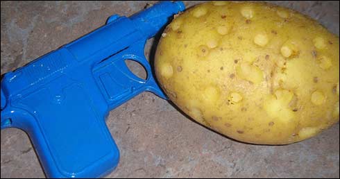 One time, Cossman starts selling spud guns. Spud guns are little toy guns that use potatoes as bullets. You simply dig the barrel of the spud gun into the potato and when you pull it out, a small piece of potato would stay in the barrel. Cossman sells the spud guns through grocery stores with some success. But he wants to make a lot of money fast. He knows from experience that giving bonuses boosts sales. So he convinces the grocery store owners to buy his spud guns in huge quantities at a discount rate. The grocery owners can then give away the spud guns for free as a bonus when people buy a bag of potatoes, driving the sales of potatoes up.