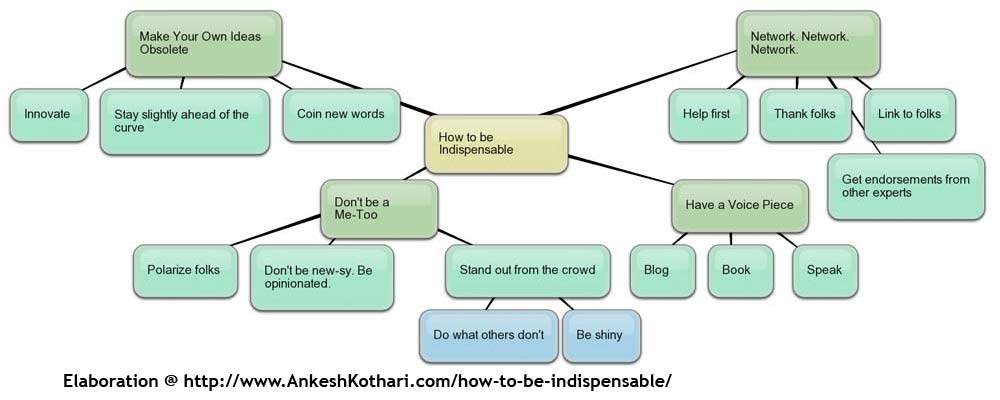 Just like Location is the make-or-break point for a piece of real estate property, networking is the make-or-break point for making you indispensable. Unless other people know you and start spreading the word about your expertise, you’ll never become indispensable!