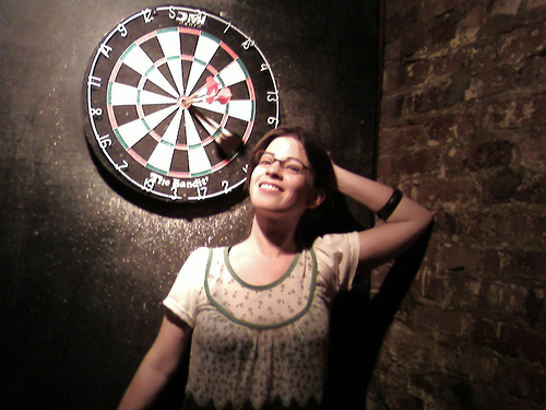 When he shoots his arrow, it goes straight through the center of the left eye of the wooden bird. Bulls Birds eye!